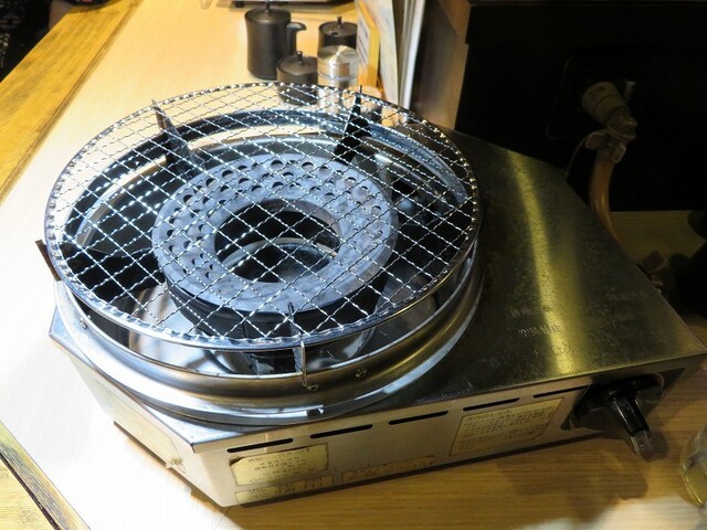 ガスのコンロに火がつけられ、肉が到着したら自分で焼いて食べる。