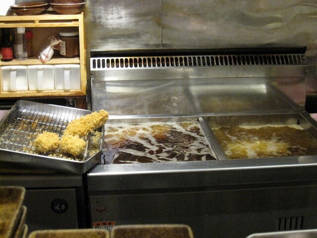 揚げる鍋とフライヤーが3つあり、それを使い分けている。