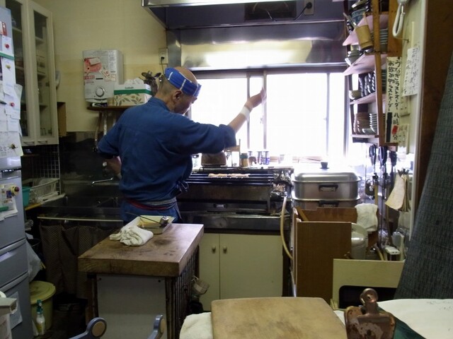 カウンターに座ると、おやじさんが仕事をしている厨房が目の前に見られる。