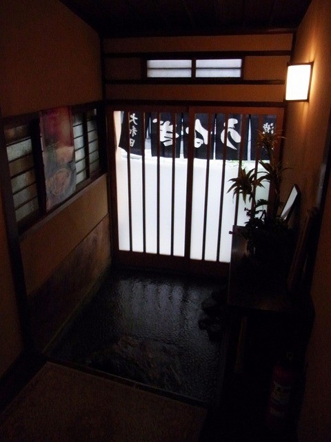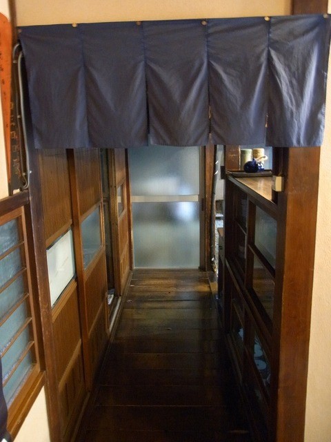 紺色の気持ちのいい暖簾をくぐって、ガラス戸をカラカラと開けると、まるで昔の民家の玄関のよう。