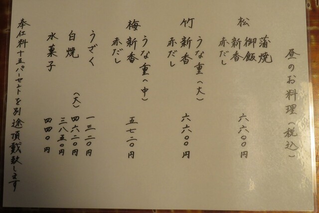 竹のうな重(大)を注文。(6600円+サービス料15%)