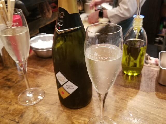 ドリンクは、スパークリングで乾杯し、赤ワインをボトルで入れました。