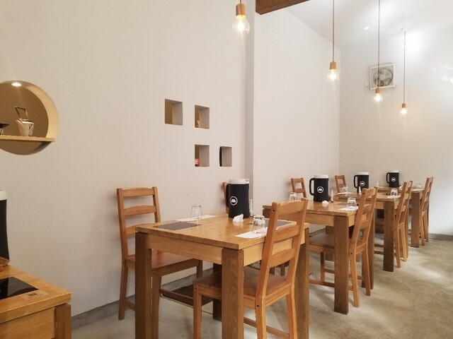 その次に「鴨葱皿」が各席に備え付けられているIHコンロに置かれ、加熱されます。