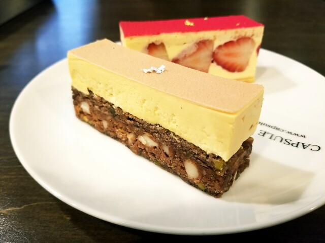 チョコレート生地は、プラリネやフィアンティーヌ、マカダミアナッツが合わせられており、香ばしさと食感が印象的です。