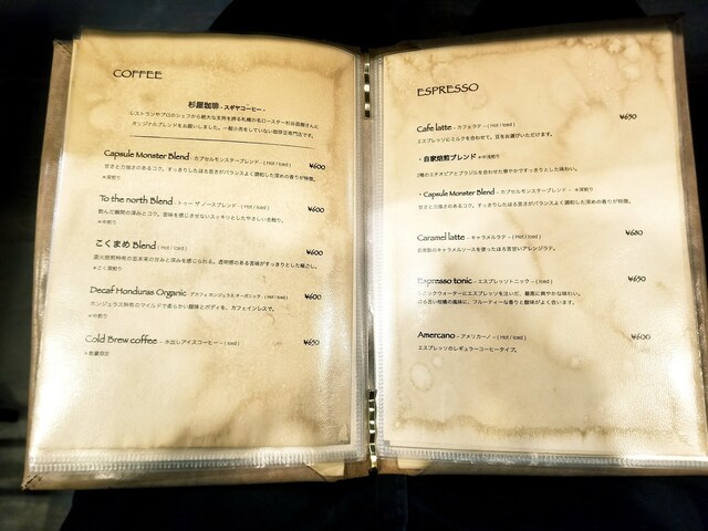 メニュー(コーヒー / エスプレッソ)