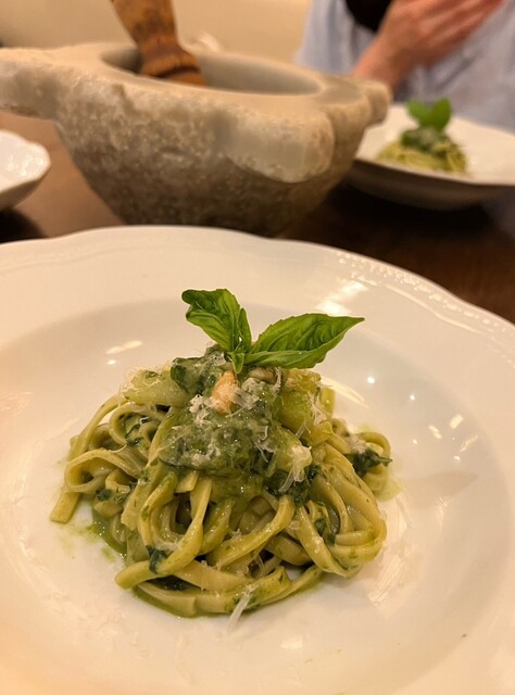 友達の結婚祝いで利用しました。サプライズをお願いしていたら、カンノーロとお花の想像以上のサプライズをしてくださり感激。噂のジェノベーゼは青々としたフレッシュさがありつつ青臭さはないサイコーなペストソー...