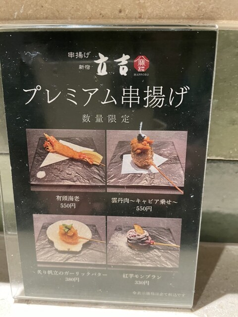 串揚げのお好きな方には是非ぜひ、お勧めの「新宿立吉 八寶楼」さんです。