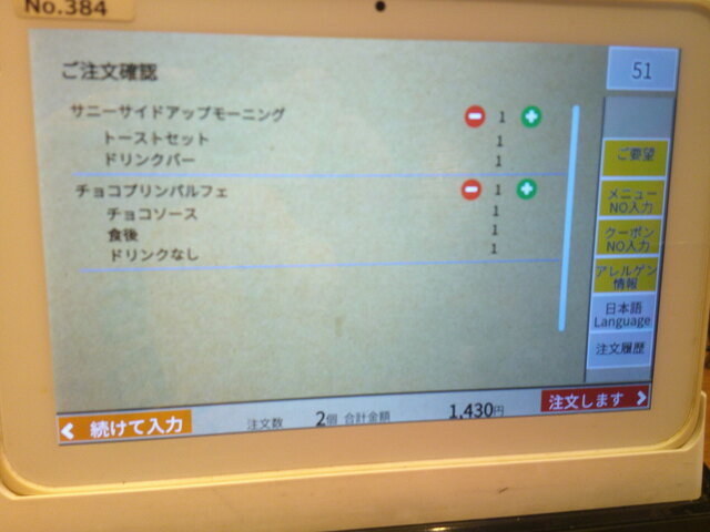 ライトモーニング ドリンクバー付き&ミニチョコサンデー