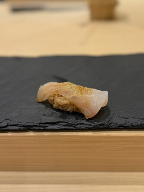 ヒラメとシャリの間に小さなエンガワを挟んでいるので食感を楽しめる!!