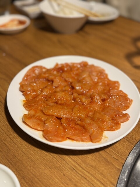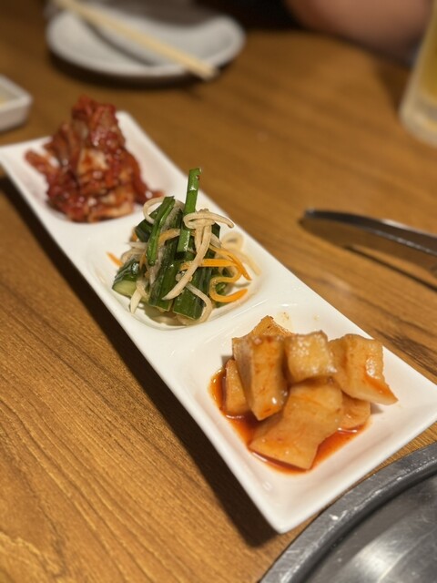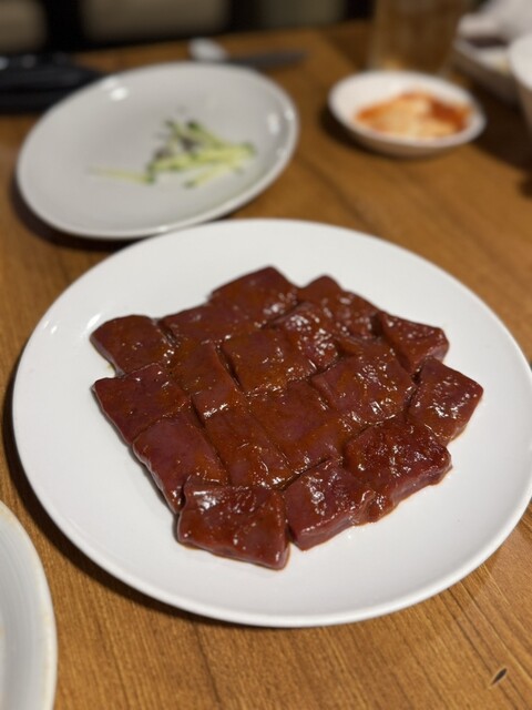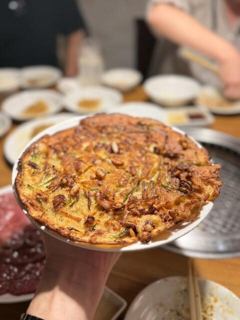 なかなか焼肉屋さんでチヂミを頼むことはないんですが、こんがり焼いてカリッと食感に、少し甘辛いタレが絶妙!