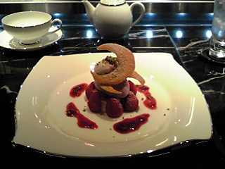 ベリー系とホワイトチョコなどを使っていて、赤と白が基調になっている盛り合わせでした。