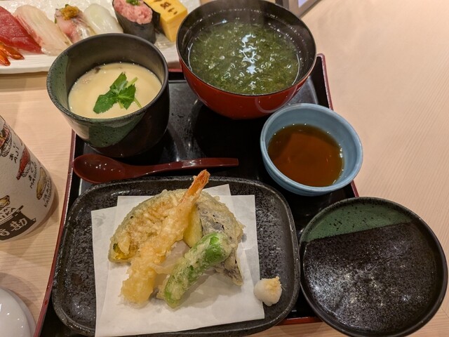 散々迷った挙句、サラダ、あおさ汁、茶わん蒸しに寿司も蕎麦も天ぷらも甘味も!というなかなかわがまま放題、贅沢なセットを頂きました。