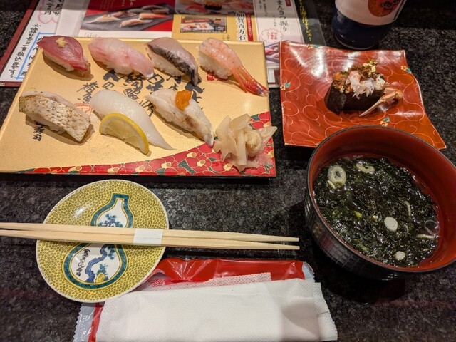 結局、7貫で金沢を満喫!のセットと更に満喫したかったので…周囲が『旬だから香箱ガニは食べて!』と口々にアドバイス?してくれたので、そこまで蟹にラブではないが前日に初・香箱ガニにも挑戦しまんまとハマったため本日は単品で軍艦を追加しました。