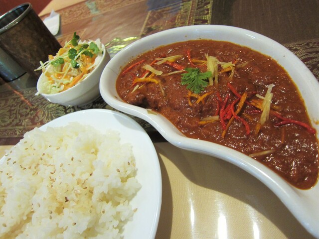 辛さは、一緒に出てくる玉ねぎのスパイス漬けで調節する。