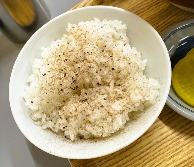 謎のオリジナル味変アイテム? ごはんは¥50値上げですがペッパーは無料(^^)/