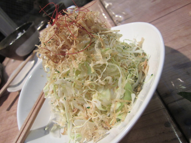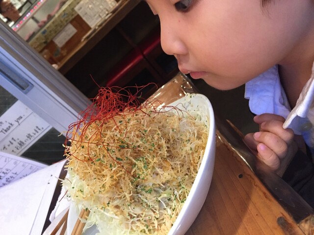 ただこのあともママの用事が残っていたので、定番の「キャベツサラダ」のハーフサイズと「しらす奴」をオーダー。