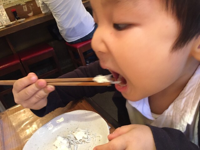 キッズメニューは、定番のしらす奴、枝豆(薄塩)。鮮魚コーナーに淡泊なものがあれば軽めの塩をお願いして焼き魚。