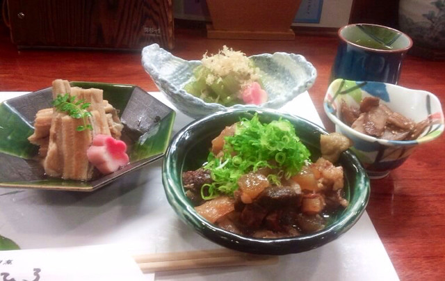呑まないのに出てくるお通しは鮪の角煮(?)。最初のオーダーは白焼きの穴子をだし汁で煮た「穴子のうま煮」前回感激した一品だ。それと、とうもろこしを塩茹ででなく味の付いた出汁で煮るこの辺りの郷土料理(?)はこの辺りでは「なんば」と呼ばれるらしい。つい3時間前まで心斎橋にいたけど「なんば」ははじめて(笑)