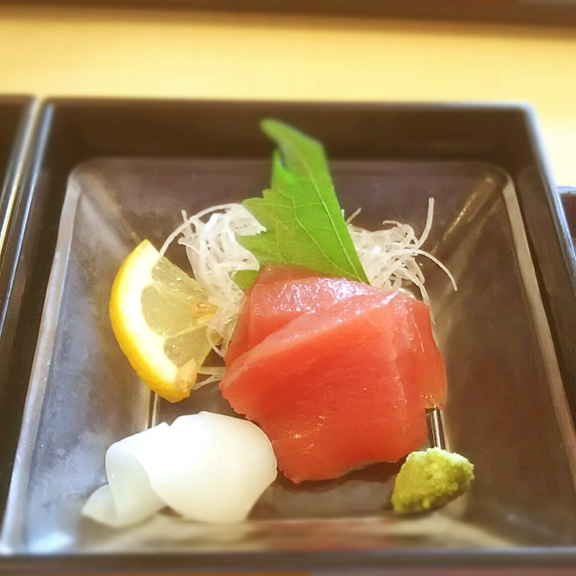 『お造り』はマグロとイカの2点とシンプルですが、盛り付け、あしらいも美しく食欲をそそります。