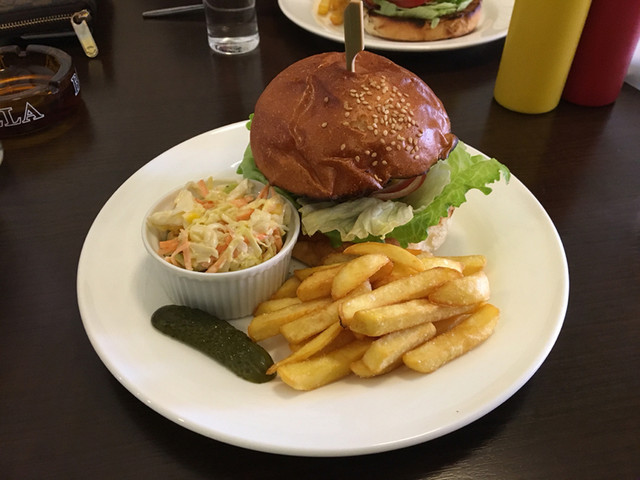 変に気になるし運命的な何かを感じてその日の帰り早速行ってみた。雑居ビルの細くて急な階段を上って行く店。普通なら行かないパターンのお店だけどなんか因縁めいた不思議な感覚でそのドアを開いた。テーブルがチョイ狭目だけど、ペンキで塗った白い壁、電気のシェード、BGM等々、新宿な感じではなくアメリカの田舎町のダイナーな感じ。チャコールグリドルなら上がる肉の焼けた香ばしい香りが立ち込め食欲とテンションが共にMAX!!さぁ!アメリカを喰らってやろうじゃないか!!