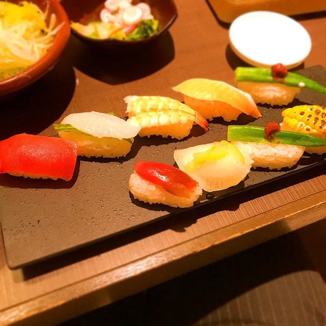 ありきたりのネタで美味しくないお寿司が出るしゃぶしゃぶ食べ放題のお店はいっぱいあるけど、こちらの寿司は違う。工夫を凝らしたバラエティ豊かなネタのお寿司には非常に満足。