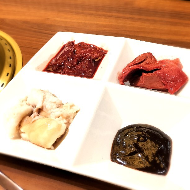高いグレード(A5)のお肉は脂負けするので安い方の盛り合わせ。三千円台だから期待してなかったけどかなりいいお肉。そして2人でも十分、あと好きな肉を数皿追加すれば3人でも最適な量。だから絶対一人じゃ無理!と思ったけど美味い♡美味い♡♡こんなに美味いならホルモンも美味いに違いない!と内臓肉盛合せ。
