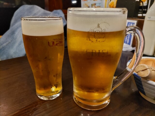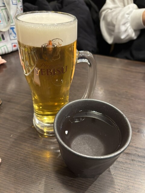 生ビールと佐藤(白麹)お湯割で、乾杯♨️