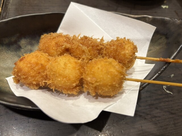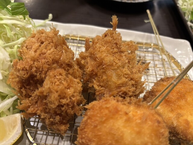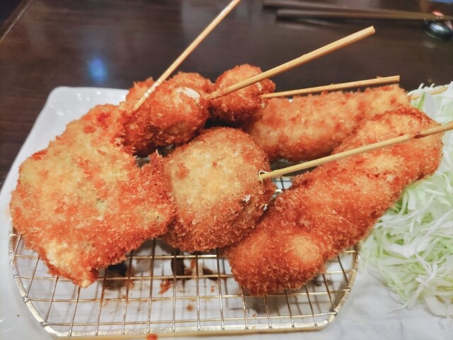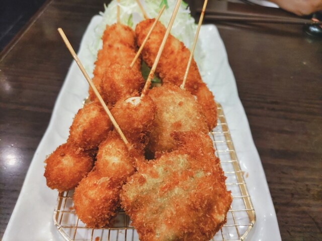 江田島産大粒牡蠣フライ、串揚げ〜椎茸クリームチーズ