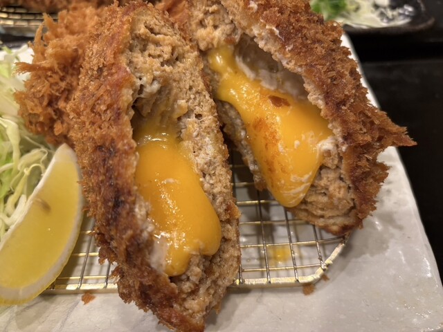 ソフトなメンチゆえ、箸で割ると崩壊し、やや食べにくかったりするけど、それもまた味。