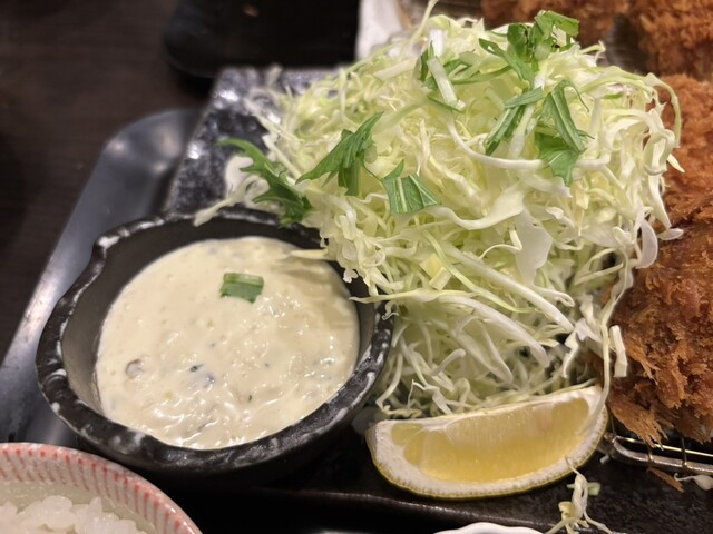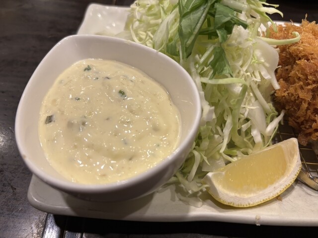大盛キャベツと、たっぷりの自家製タルタルソース‼️