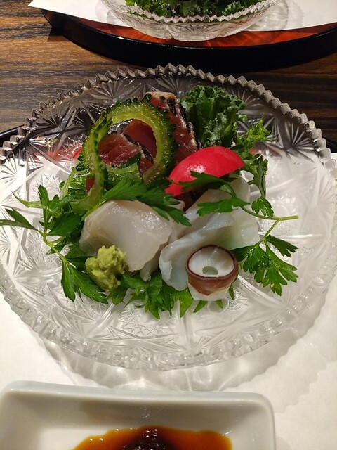 お造り:カツオ、コショウダイ、シャコ、つぶ貝