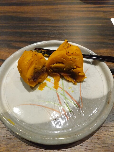 凌ぎを挟んでかぼちゃの揚げ饅頭。地味なルックスなんだけど味は抜群。特にとろみをつけたお出