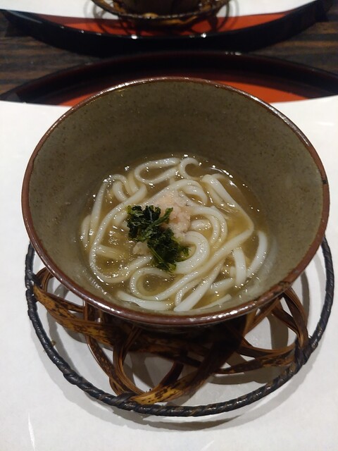 続いてお椀。今日は細切りの筍と木の芽。お出汁はすっきりとしながら一本筋が通った感じで當店