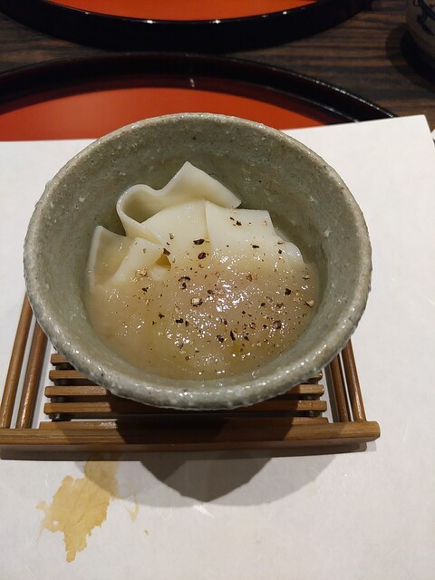 ながら當店の切れの良いお出汁が香る秀逸な一品でした。椀だねはむらさきいものしんじょう。
