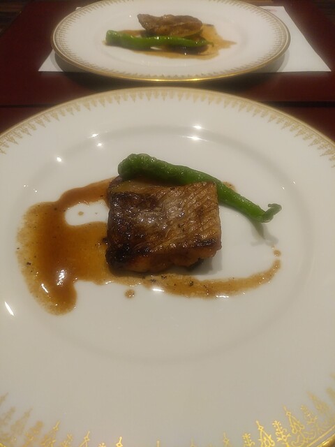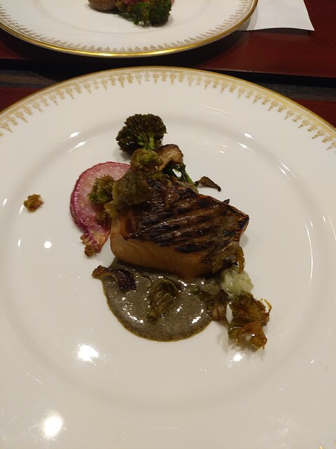 ちょっと変則的なコース設定で、最後に焼物。今日はサクラマス。身がほっこりしていて春菊のソ