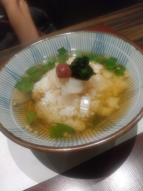 待望の松茸は最後の雑炊に。鱧と松茸の雑炊。気を遣っていただいて大き目の松茸をいただいて模