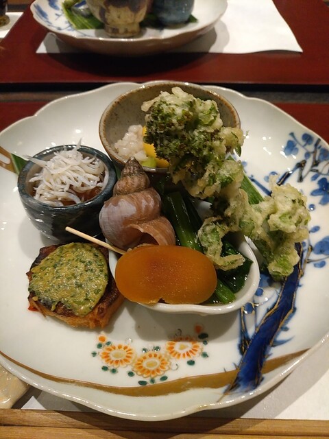 そして八寸。今日は他にお客さんがいないせいもあってかすごく繊細なお料理が盛り合されている。