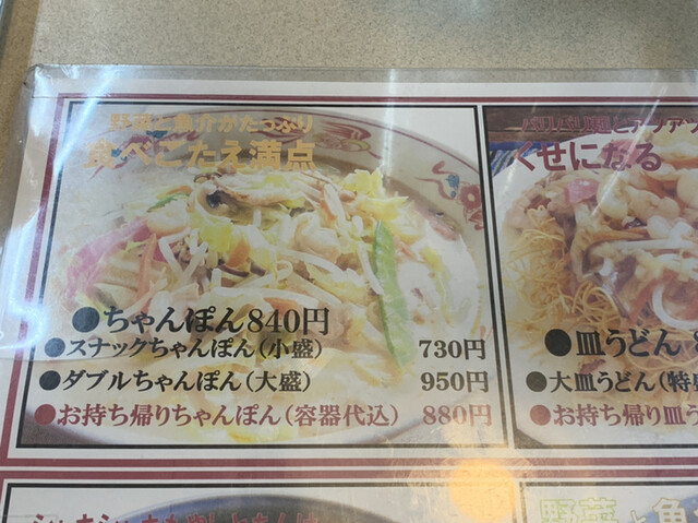 前回は去年の12月訪問ですが、チャンポン840円→880円 Bセット320円→330円に値上げされていました。