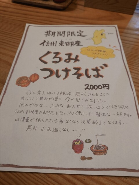 出汁を飲んで口いっぱいくるみにしてから蕎麦を滑り込ませる