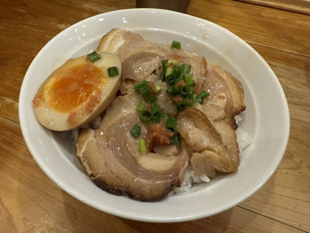 ・そこまで腹ペコではなかったのでライスは半ライスにしたが、今回もチャーシュー・味玉を乗せて勝手にチャーシュー丼にした。個人的にチャーシューはラーメンよりごはんと食べる方がうまい気がする。