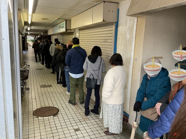 行列の待ち客、年齢層も年配者から若者まで、幅広くてちょっと見ない光景でした。