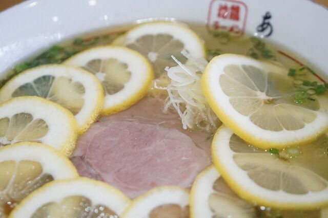 福島県郡山市昭和の、ありがとうさん。接客も雰囲気も、最高でした。お目当ては、塩レモンラーメン。ビールもお願いしたら、キムチかしなちくが付くそうです。塩レモンラーメンも到着。レモンはずっと入れていると、苦みが出るそうです。手早くレモンの風味を映して・・・期待通りのさわやかさ。麺も美味しいです。久しぶりに、スープまで完食。ご馳走様でした。美味しかったです。