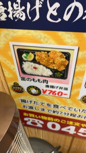 メニューを見て、金のもも肉からあげ弁当760円と、牛肉コロッケ1個150円を注文しました。