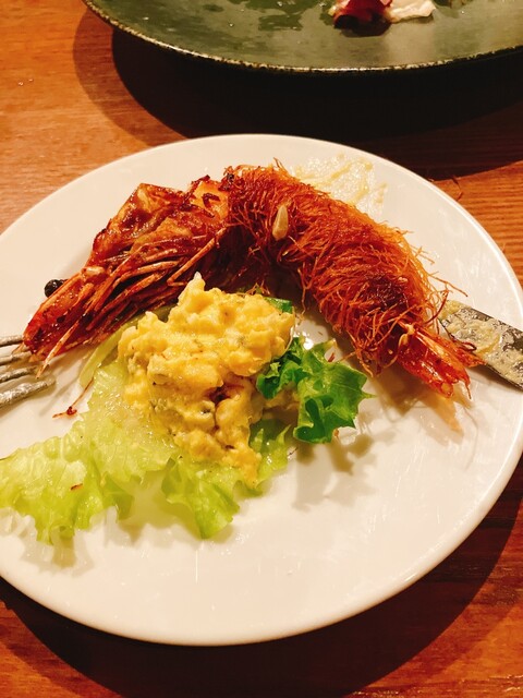 ここで客人要望の黒板メニューから天使の海老のカダイフ巻き。