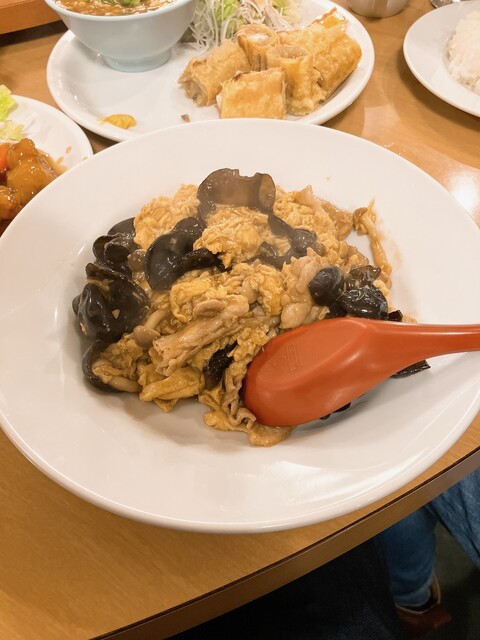 玉子とキクラゲのシンプルな料理ですが餡のまろやかな酸味が全体を包み込み玉子の甘さとキクラゲのコリコリと合わさってめっちゃ美味しいです〜。