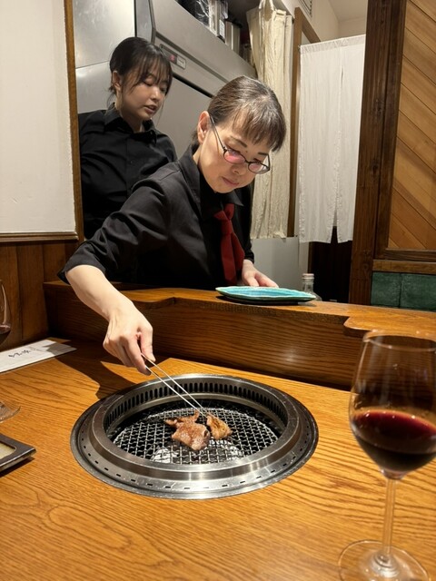 メニューはコース。感動するのはお肉を一枚づつ丁寧にオーナーとスタッフさんが育ててくれ、焼き上がったらすぐ食べるのではなくて一旦カウンターに引き上げてオーナーが一手間加えて出してくれる。どれもこれも絶品!