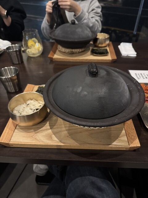 サムゲタンは美しい陶器の器で供され、体が温まる優しい味わいで印象的でした。