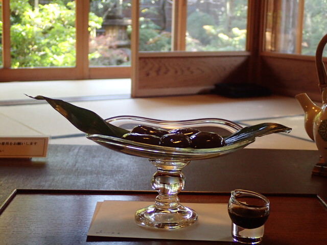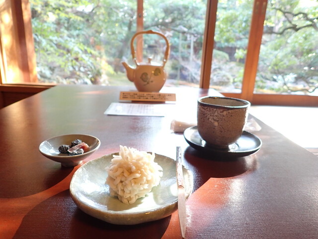 妻は上生菓子とお茶のセットを注文。上生菓子の「ゆきもち」は嘯月さんには負ける。