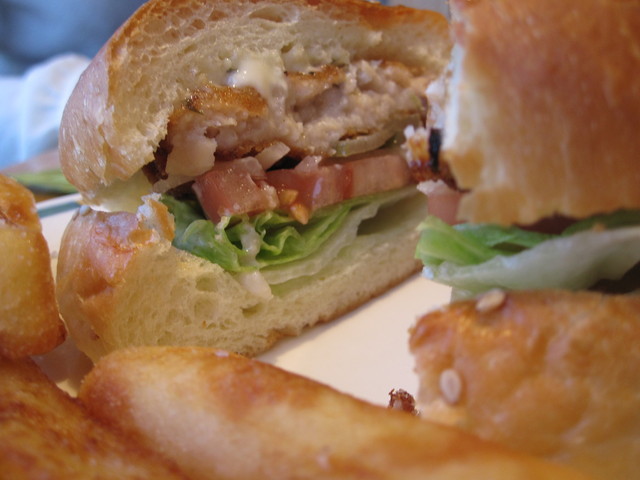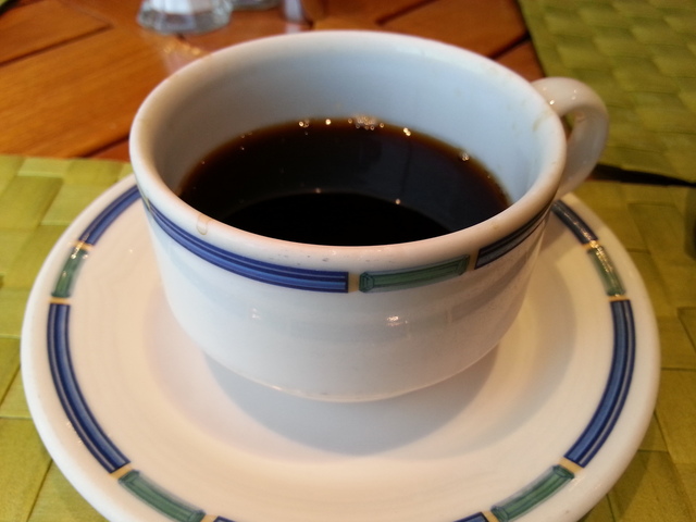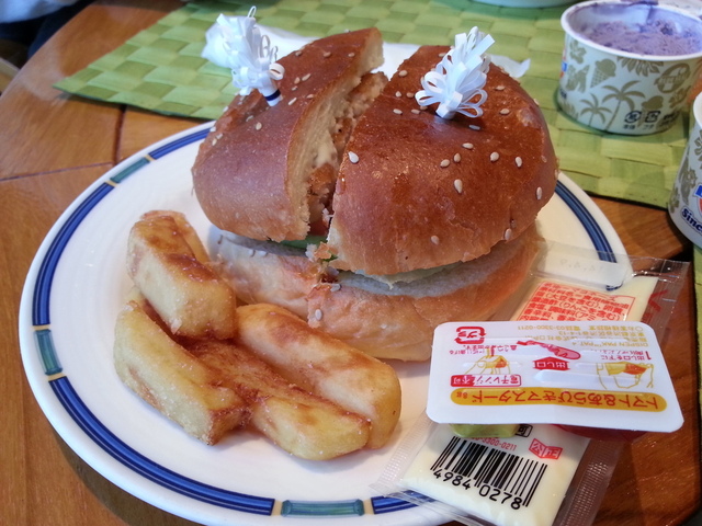 シーフードバーガーとポテトとコーヒーをオーダー