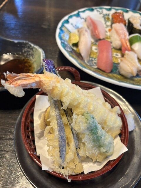 海苔汁 天ぷら 茶碗蒸しの付いた握りのセット
